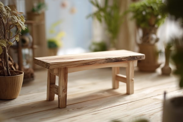 子供用ローベンチを設置場所に置き、水平を確認します。ガタつきがある場合は脚底に高さ調整パッドを貼って対応します。