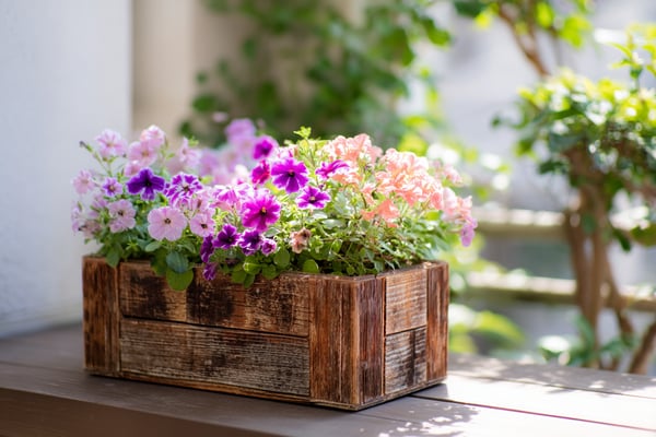 アンティーク木箱フラワーボックスを設置場所に仮置きし、水平を確認します。掛け金具やフェンス固定金具が必要な場合は取り付けます。