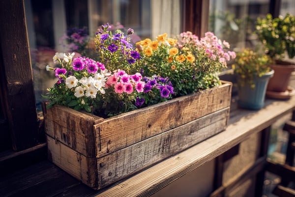 屋外用防腐塗料を内外全面に2回塗りします。特に底板・木口面は念入りに。乾燥後24時間待ってから土を入れます。
