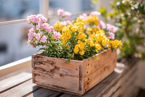 ミニハーブガーデンボックスを設置場所に仮置きし、水平を確認します。掛け金具やフェンス固定金具が必要な場合は取り付けます。