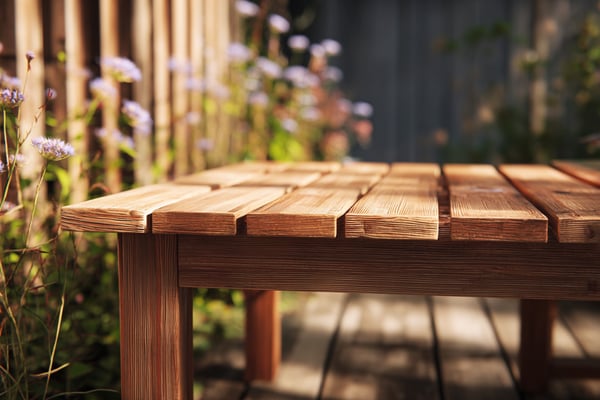 ガーデンテーブルの水平とガタつきを確認します。脚底にフェルトパッドを貼ると床傷を防げます。