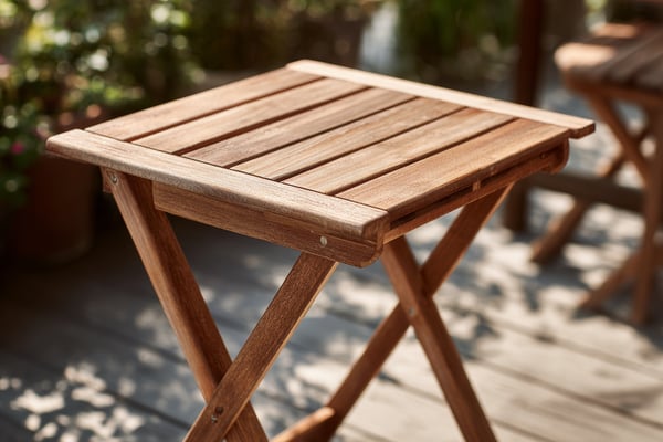 縁台テーブルの水平とガタつきを確認します。脚底にフェルトパッドを貼ると床傷を防げます。