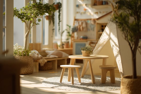 キャンプ用キッズチェアを設置場所に置き、水平を確認します。ガタつきがある場合は脚底に高さ調整パッドを貼って対応します。