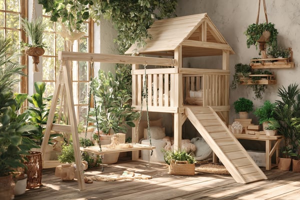 ブランコを設置場所に置き、水平を確認します。ガタつきがある場合は脚底に高さ調整パッドを貼って対応します。