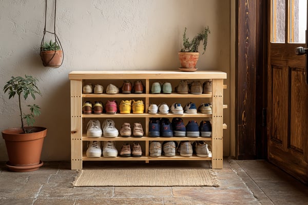 子供用シューズラック(500×250×400mm)のカットリストを作成します。杉板の木口面は防腐剤を事前に塗ると耐久性が上がります。