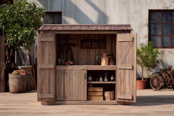 物置兼作業台の各面の垂直・蓋の開閉確認・ビス締めの確認を行います。設置場所に置いてガタつきがないか確認します。
