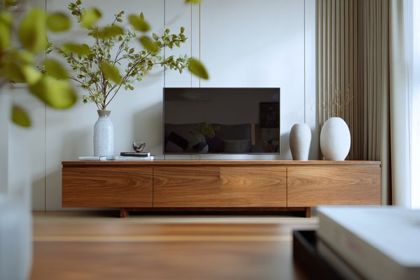 コーナーTV台の水平・ガタつきを確認します。脚底にフェルトまたはゴムパッドを貼ります。配線穴が必要な場合はホールソーで開けます。