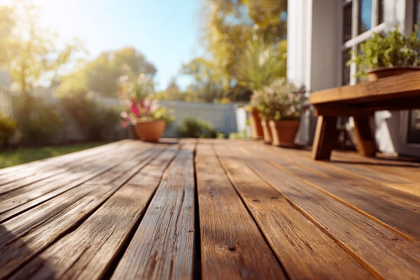 デッキ全体にキシラデコールやウッドステインを木目に沿って塗ります。24時間乾燥後に2回目を塗ります。根太・大引きの露出面にも塗布します。